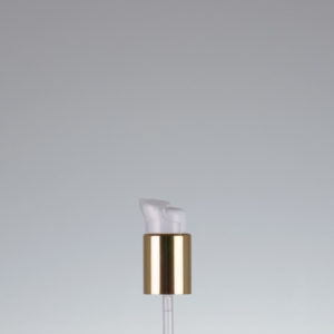 Pompe crème Eur5 Metro chapée aluminium or brillant, bouton poussoir blanc 140mcl TP 130mm